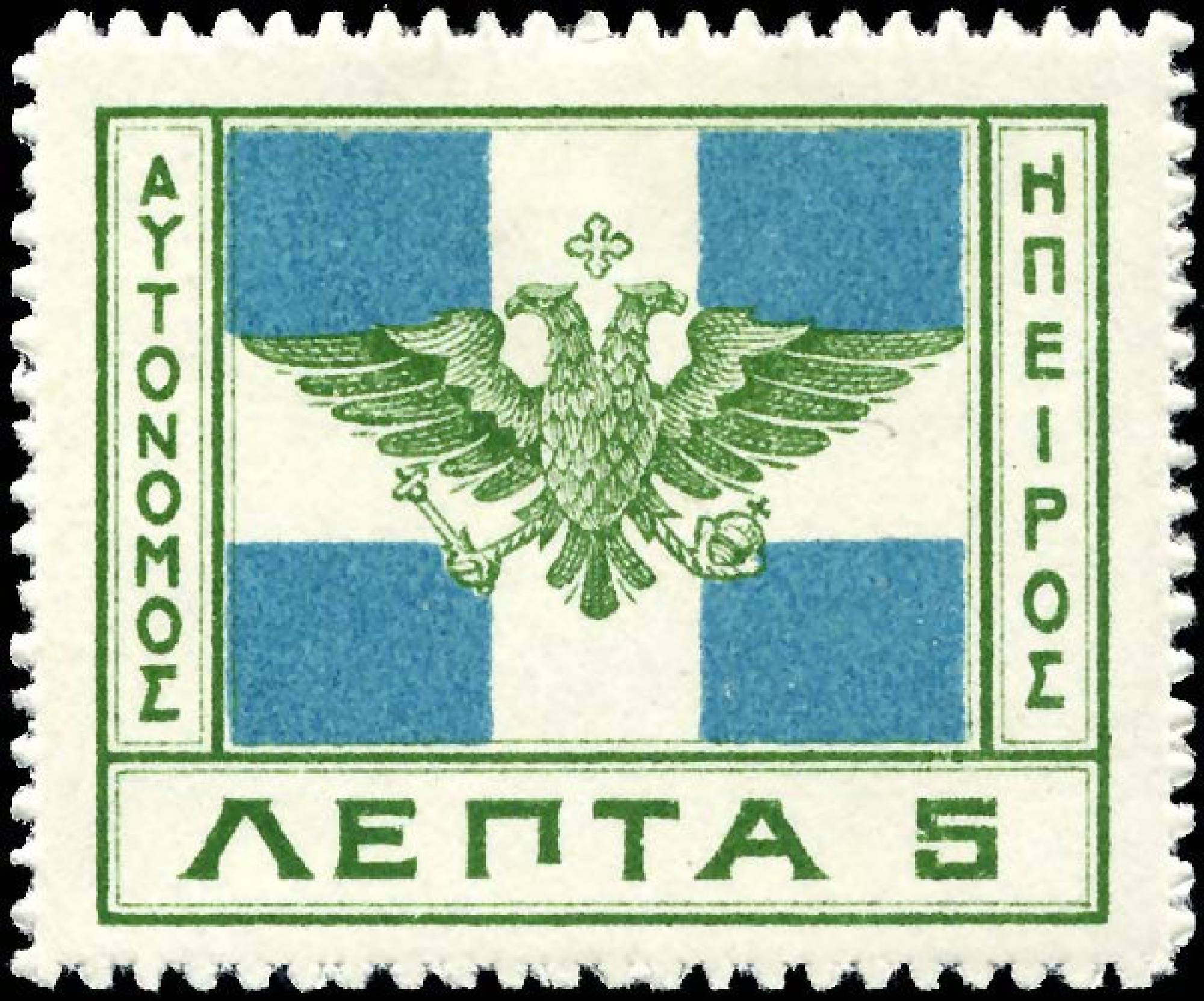 Γραμματόσημο της Αυτόνομης Βορείου Ηπείρου, με τη σημαία του Βορειοηπειρωτικού Κράτους