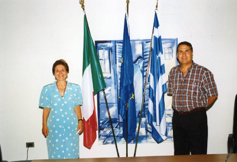 Ο Δημήτρης Αλεξάνδρου με την Πρόεδρο των Ελλήνων αλβανοφώνων στην Piana dei Greci της Σικελίας, Αύγουστος 1997